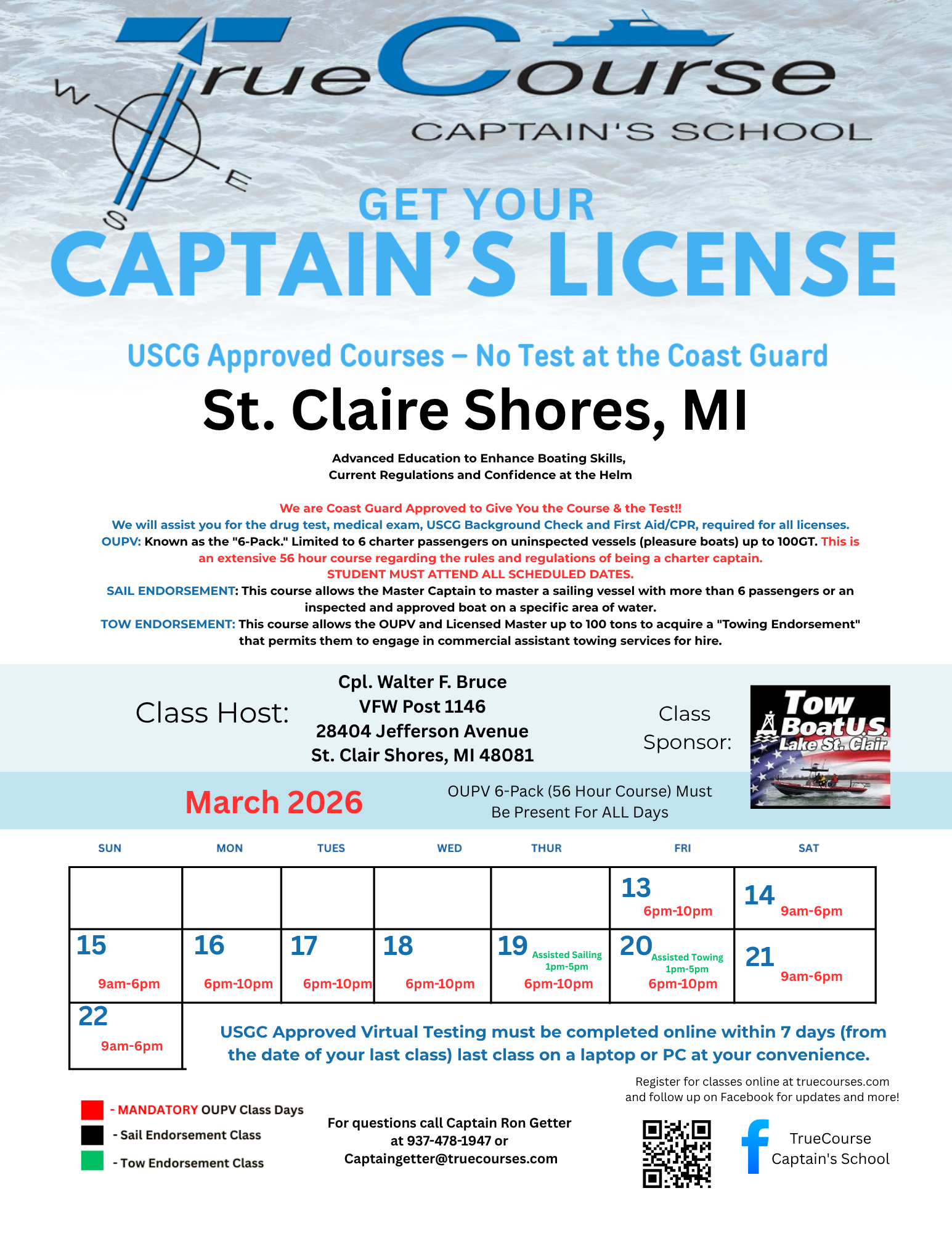 This course eliminates the 360 days of sea service time to renew your license every five years (you have only 12 months of grace time to renew after your license expires). TAUGHT ONLINE ONLY UNLESS SPECIFIED ON THE CLASS ADVERTISEMENT.